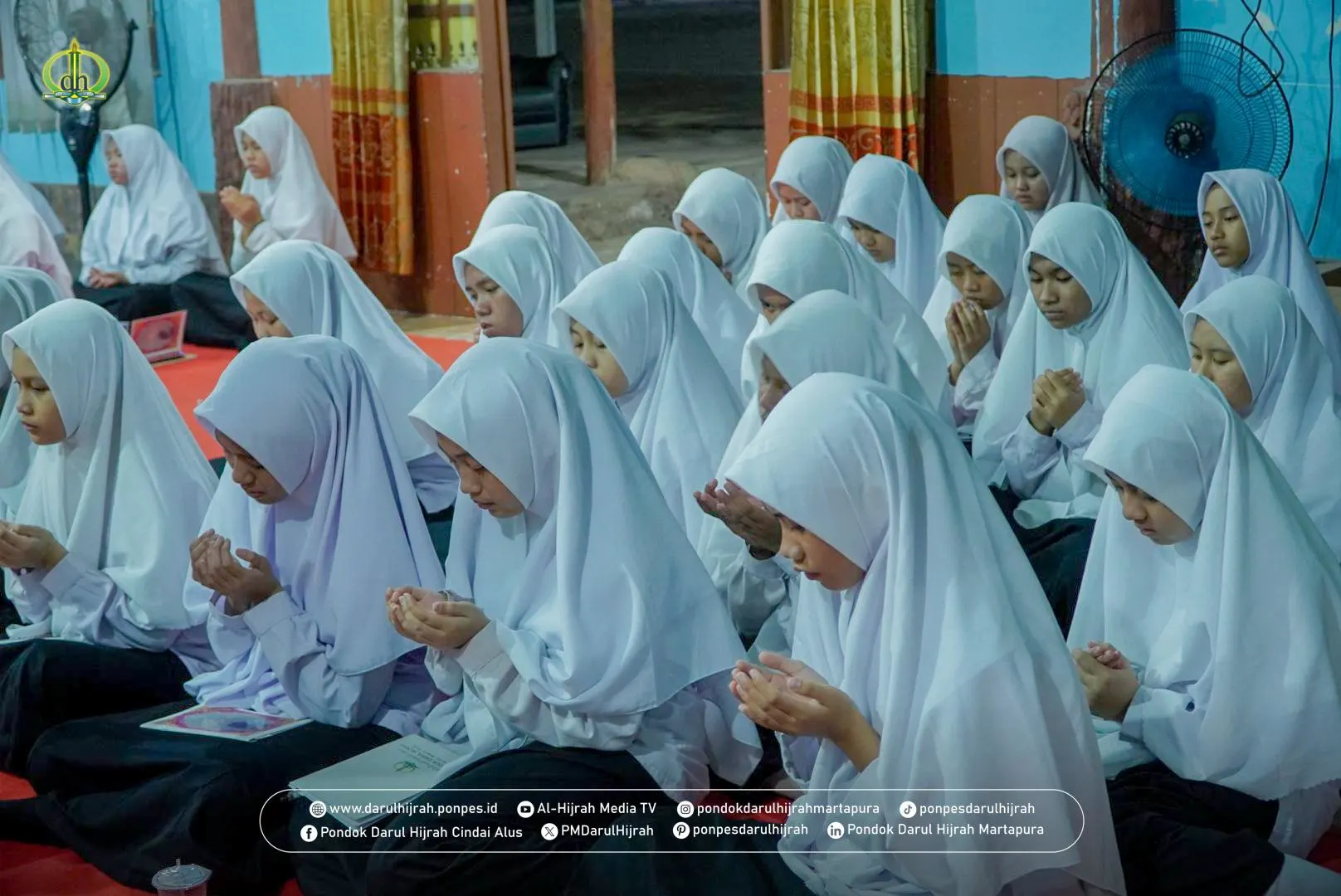 Kegiatan etiket perpulangan untuk putri dilaksanakan setelah Shalat Tarawih berjamaah di Mushalla Pondok Darul Hijrah Putri Cindai Alus. Acara berlangsung secara khidmat, diikuti oleh seluruh santri putri dengan penuh perhatian. pembacaan etiket perpulangan sebelumnya sudah disampaikan pimpinan pada pagi hari untuk santri putra.