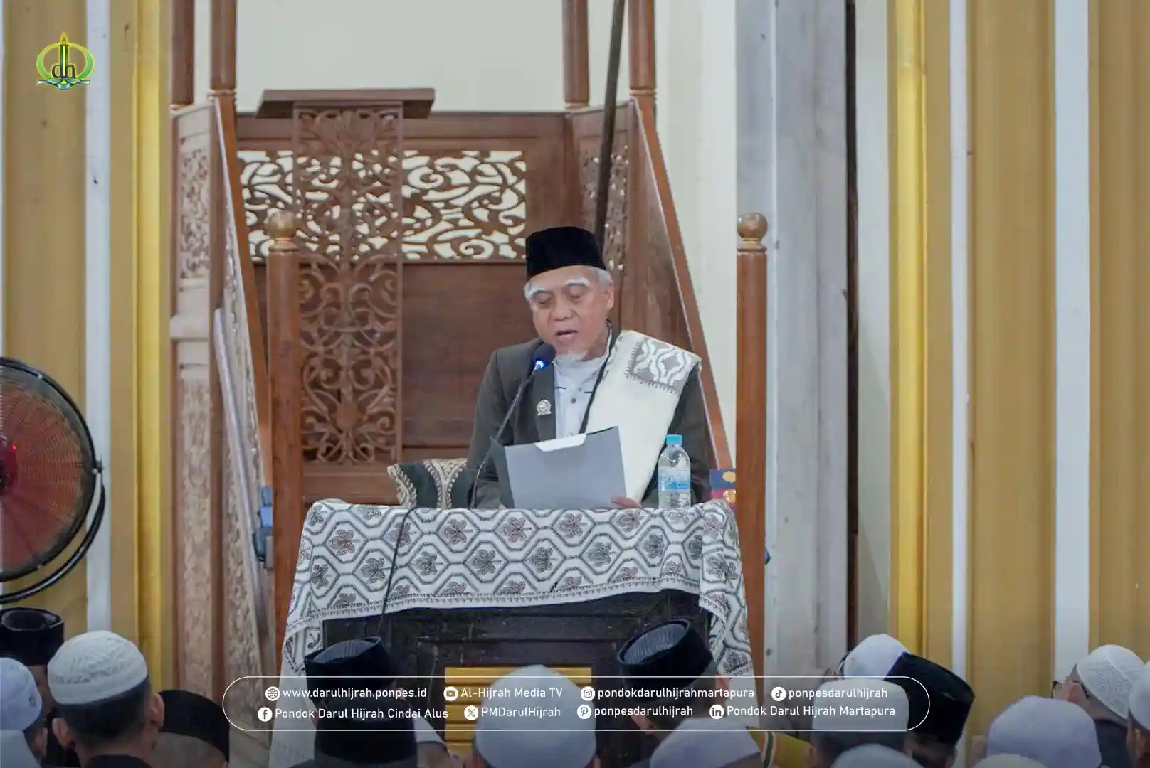Setelah shalat tarawih, seluruh santri berkumpul di Masjid Nurul Anshar Darul Hijrah. Pimpinan Pondok Darul Hijrah Cindai Alus, Drs. K.H. Muhammad Nasrul Mahmudi, memberikan tausiyah kepada para santri agar liburan mereka tetap penuh manfaat dan keberkahan.