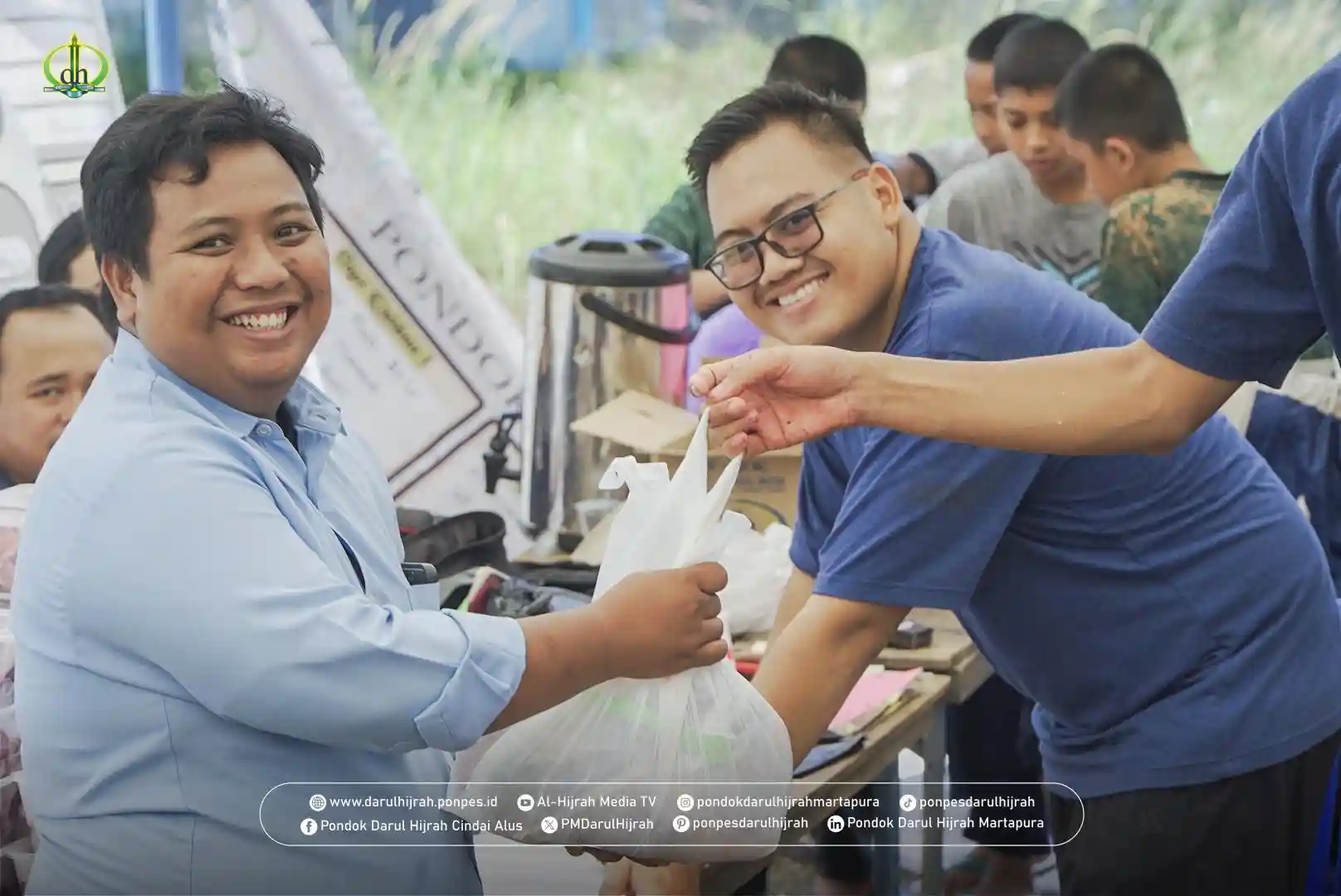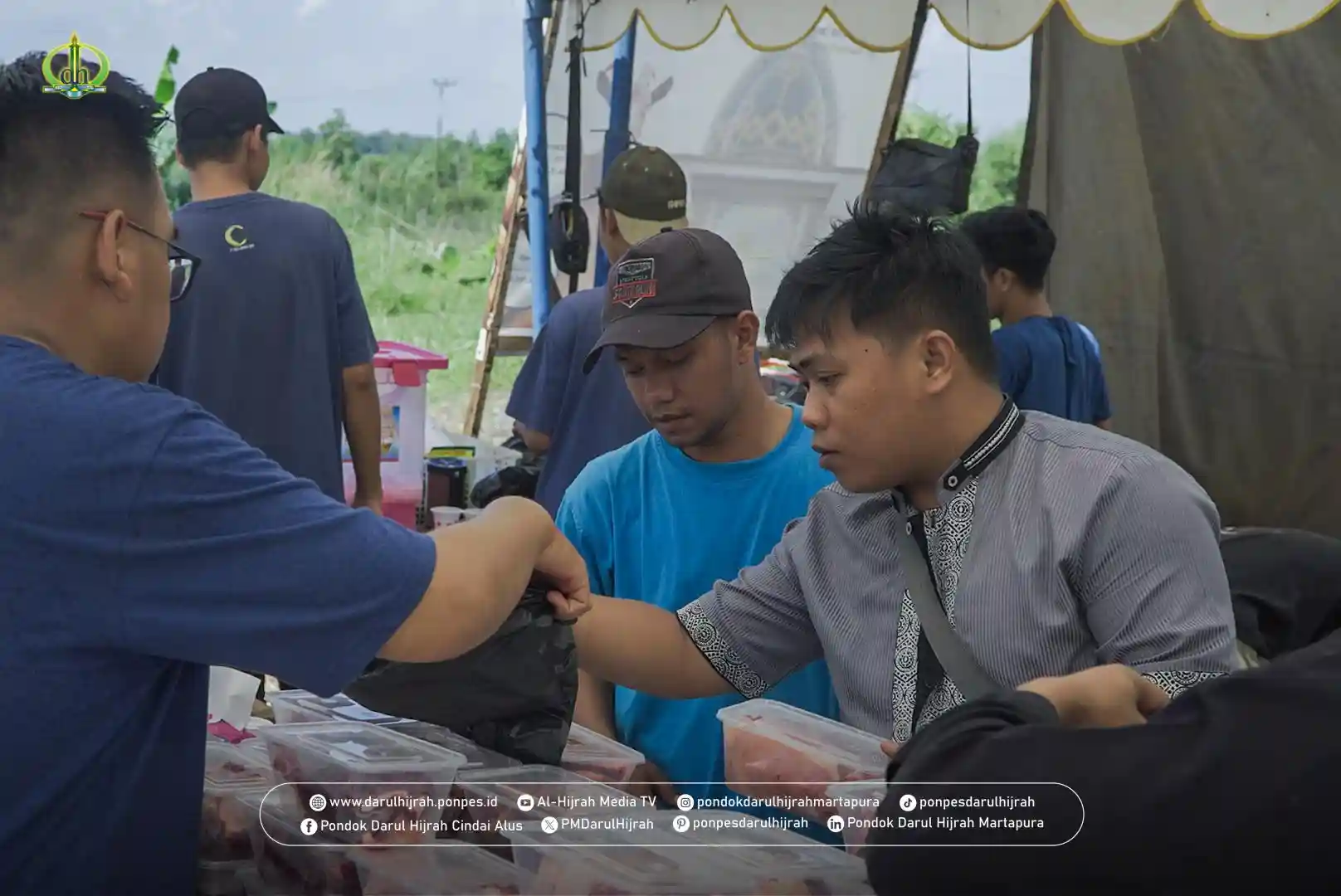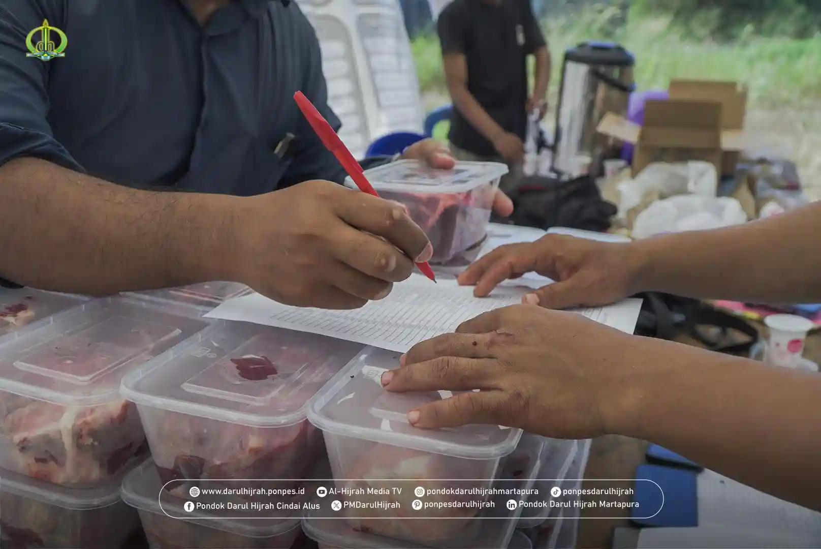 Panitia memastikan bahwa seluruh proses pembagian daging qurban dilakukan dengan sistem yang tertata rapi. Daging dibagikan kepada pihak-pihak yang berhak menerima, termasuk guru-guru, para santri, dan masyarakat lingkungan Pondok Darul Hijrah Cindai Alus. Penyaluran dilakukan secara langsung maupun melalui pendataan yang rapi, sehingga tidak menimbulkan kerumunan dan tetap menjaga ketertiban.