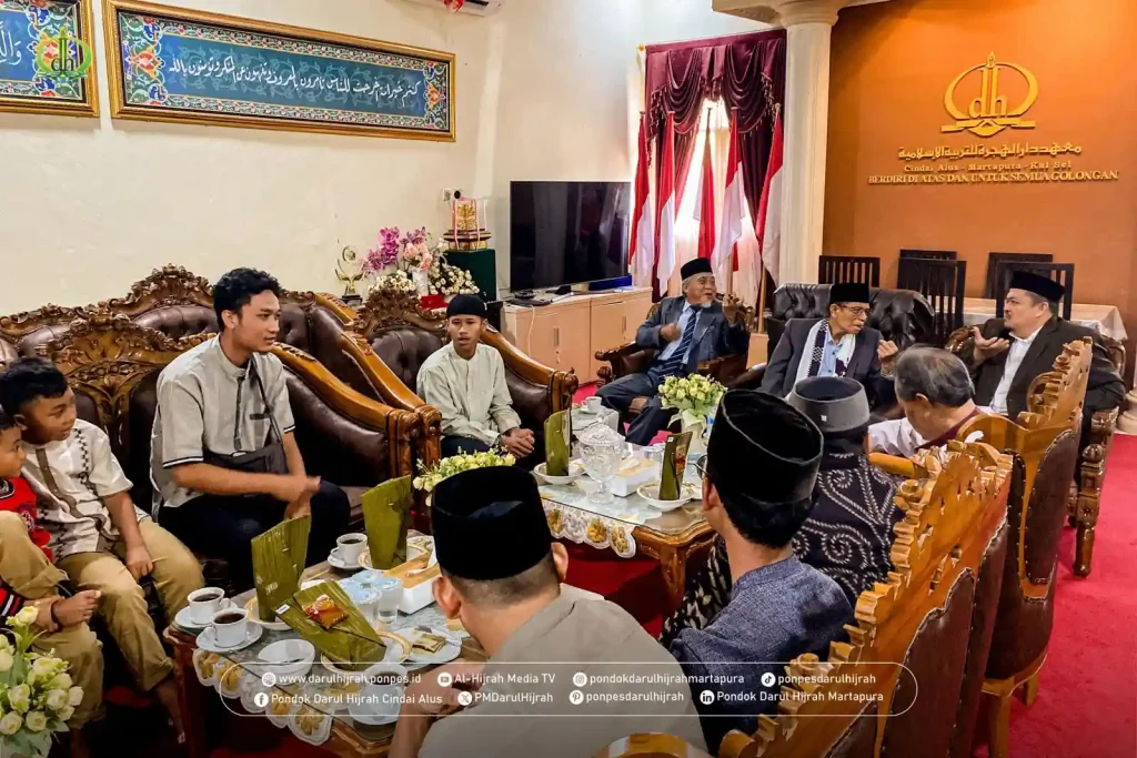 Walaupun tamu yang datang hanya utusan, sambutan kunjungan silaturahmi dilakukan secara langsung oleh para pimpinan dan masayikh Pondok Darul Hijrah. Kehadiran penuh dari para tokoh pondok menunjukkan penghormatan dan ketulusan dalam menjamu tamu sesama pegiat pendidikan Islam.