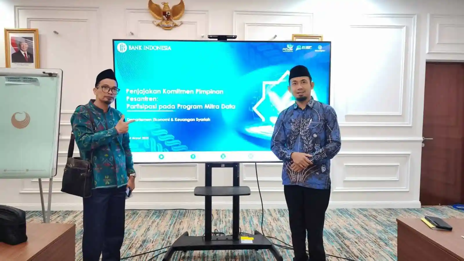 Jakarta, 14 Maret 2025 – Sosialisasi dan diskusi menjadi agenda utama dalam pertemuan yang digelar oleh Departemen Ekonomi & Keuangan Syariah (DEKS) Bank Indonesia. Dalam acara yang berlangsung di Auditorium Hotel Bidakara, Jakarta ini, hadir perwakilan dari berbagai pesantren di seluruh Indonesia. Dari Kalimantan Selatan, hadir perwakilan dari Pondok Darul Hijrah Cindai Alus Martapura, yaitu Ust. H. Antung Tamin Rahman, S.Pt., M.Si., dan Ust. Muhammad Bahroini, S.Pd.I., M.Pd., serta perwakilan dari Pondok Ushuluddin Tambak Anyar Martapura.