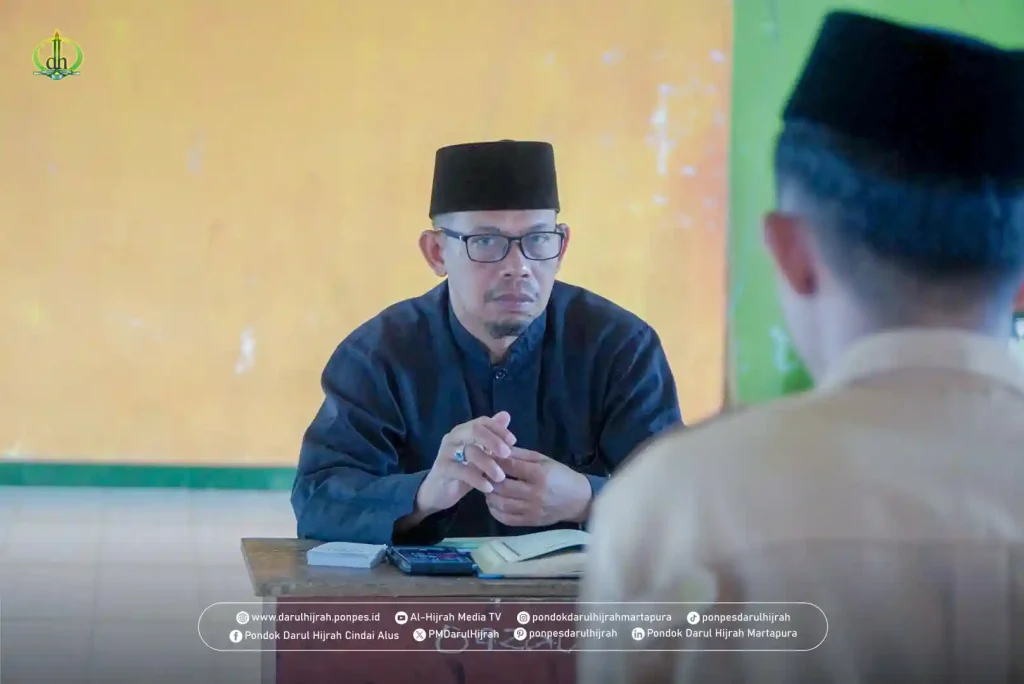 Martapura, 10 Maret 2025 – Tim Dokumentasi dan Publikasi Pondok Darul Hijrah mengadakan wawancara dengan Kepala Pengajaran TMI, Al Ust. H. Muhammad Luthfi, M.Pd., terkait pelaksanaan ujian lisan syafahi santri akhir. Dalam pemaparannya, beliau menyampaikan bahwa santri akhir Tarbiyatul Muallimin Al Islamiyah (TMI) setara dengan kelas 12 MA/SMA dan sedang menjalani ujian lisan syafahi yang berlangsung dari 3 hingga 8 Maret 2025.