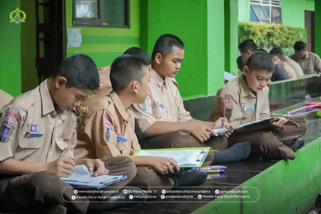 Martapura, 30 Mei 2025 – Ujian syafahi dan tahriri di Pondok Darul Hijrah Cindai Alus resmi dimulai. Ujian lisan berlangsung sejak 26 Mei dan akan berakhir pada 31 Mei 2025. Selanjutnya, ujian tahriri atau ujian tulis dijadwalkan mulai 2 Juni hingga 23 Juni 2025. Hal ini disampaikan langsung oleh Ust. H. Muhammad Luthfi, Kepala Pengajaran TMI. Tahap pertama dari ujian adalah ujian lisan yang dikenal sebagai Imtihan Syafahi. Kegiatan ini berjalan selama enam hari dan melibatkan banyak guru dari Tarbiyatul Muallimin Al Islamiyah (TMI) Pondok Darul Hijrah. Ratusan ruang ujian digunakan dalam proses ini. Semua dijalankan dengan kedisiplinan tinggi dari santri dan guru.